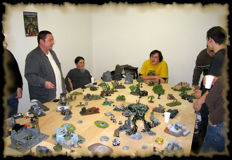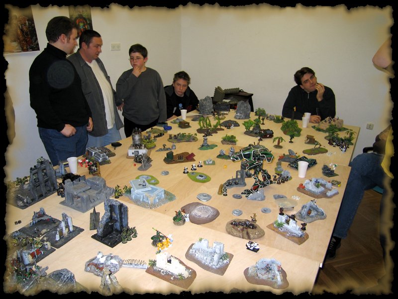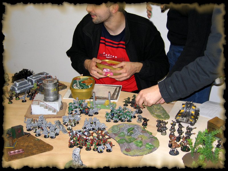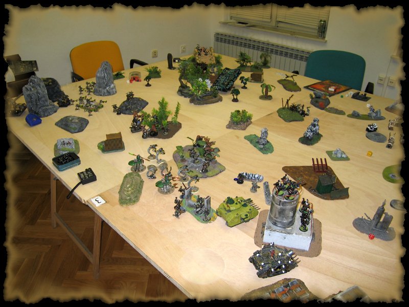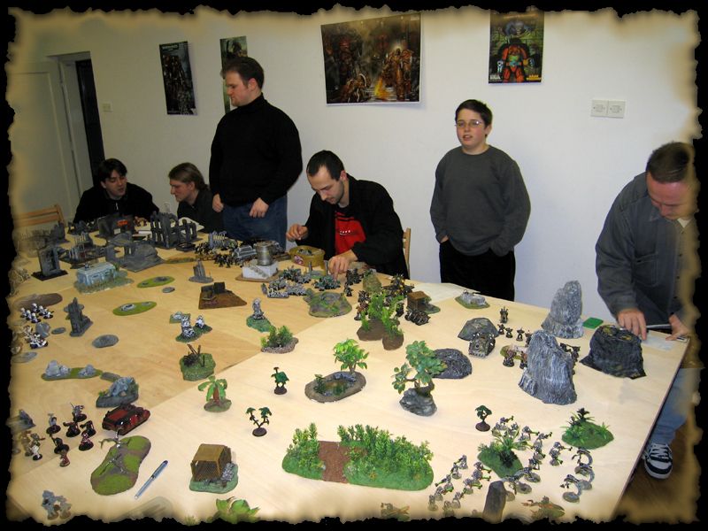 Nakon mukotrpnog posla sa stolom, ljudi su se počeli okupljati i bilo je vrijeme da vidimo tko igra na kojoj strani i sa koliko bodova... Odlučeno je na 1000 bodova sa svake strane, dakle 6000 bodova Kaosa protiv 6000 bodova Imperije Bitka za prevlast je bila spremna ...